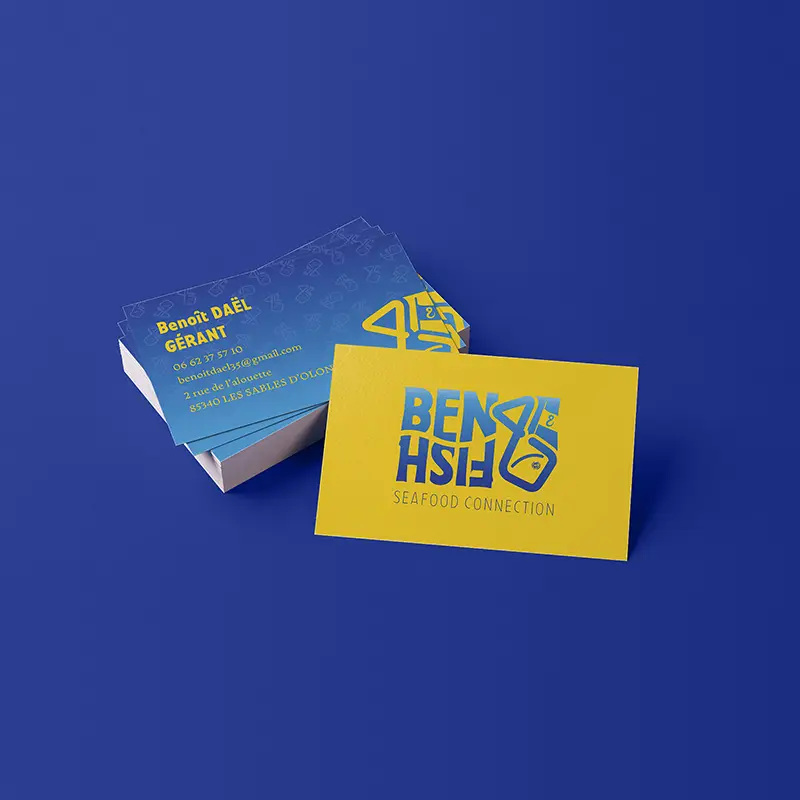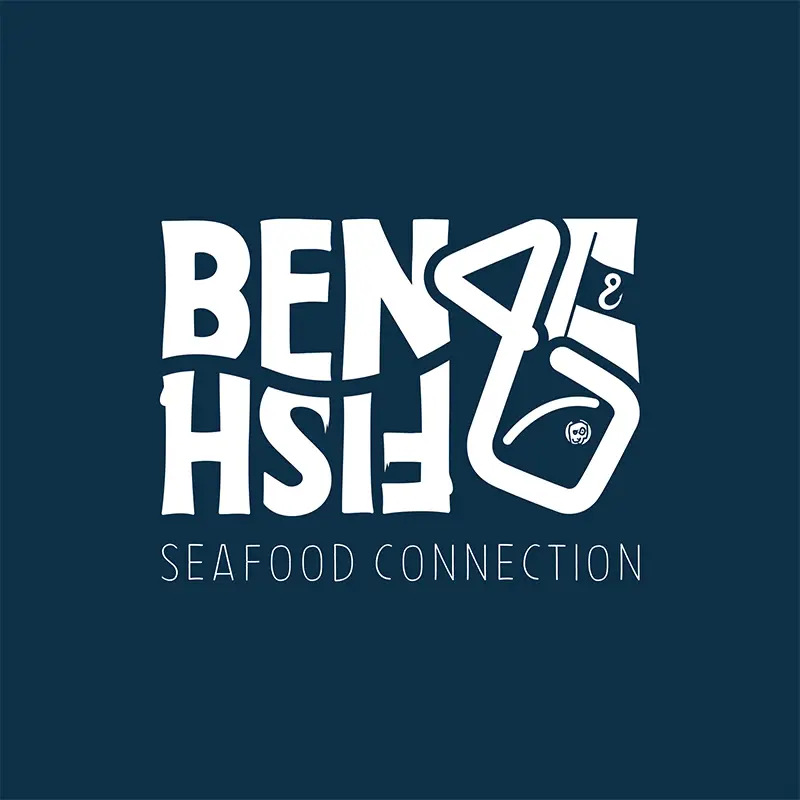 Ben & Fish est une entreprise de commerce des produits de la mer qui s'inscrit dans une démarche de pêche durable. Les échanges et les relations humaines occupent une place prépondérante. Nous avons conçu un logo humaniste, au look fun et rétro des années 90. Nous avons également apporté un vent de fraîcheur, à travers les couleurs et le design, pour souligner la provenance et le circuit court des produits.