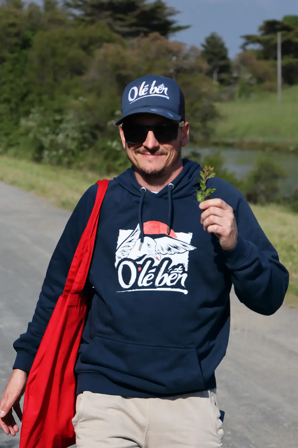 Origine : Sweat O l’é ben à capuche – Mouette et logo, sérigraphie aux Sables d’Olonne – Confection 100% Française.