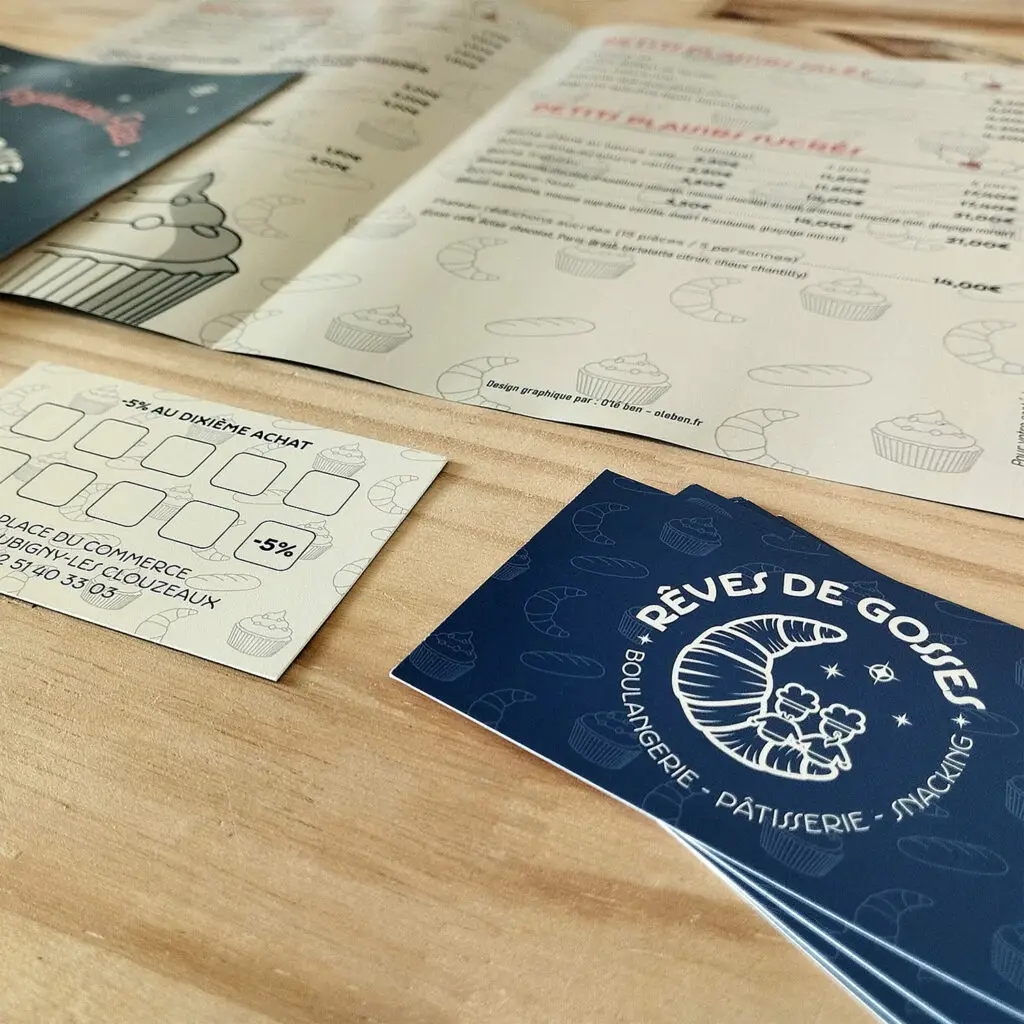 Nous avons travaillé sur l’ensemble de leurs supports de communication, à commencer par le logo. J’ai ensuite eu le plaisir de réaliser le design de leur enseigne, des flyers et des cartes de fidélité. Pour visionner le projet complet en vidéo, cliquez sur le lien suivant : https://www.youtube.com/watch?v=doeqqX4bVnI&t=261s
